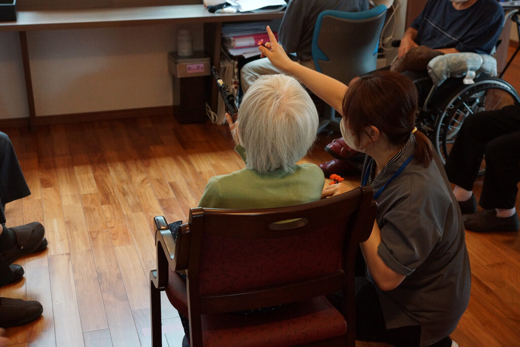 お風呂と昼食が一番の楽しみです。職員の方が体調面をいつも気にかけてくれて、色々相談にも乗ってくれるので嬉しいです。家ではなかなか身体を動かすことがないのでデイでする体操は楽しいです。尻取りゲームが考えるのが難しいですが、皆んなが助けてくれるので嬉しいです。 時々昼食を外食に連れて行ってくれるのが、一人では行けないのでこんな時しかないと思って嬉しいです。